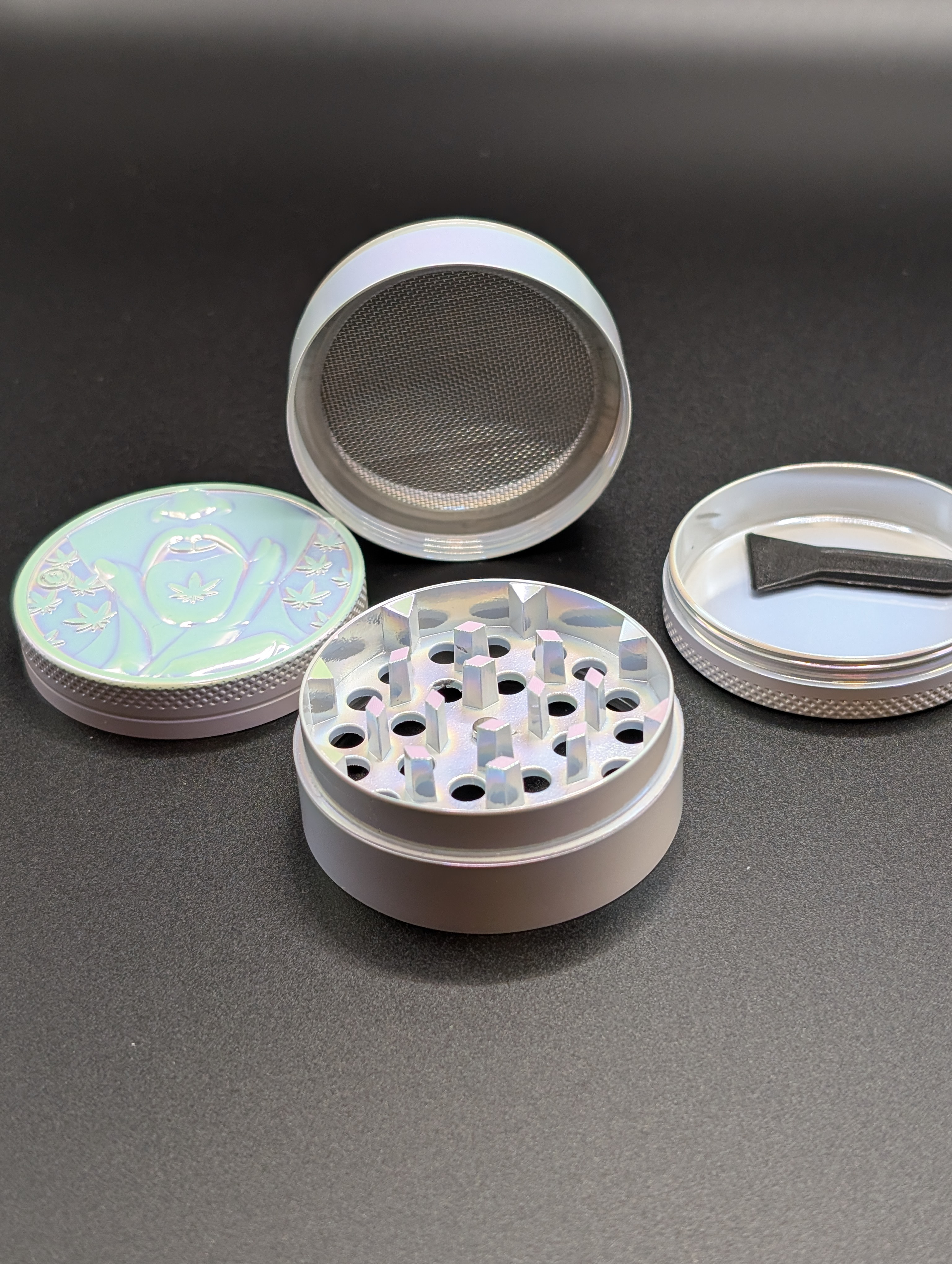 Der Grinder verfügt über ein durchdachtes 4-Kammer-System mit integriertem Pollensieb und Auffangbehälter.