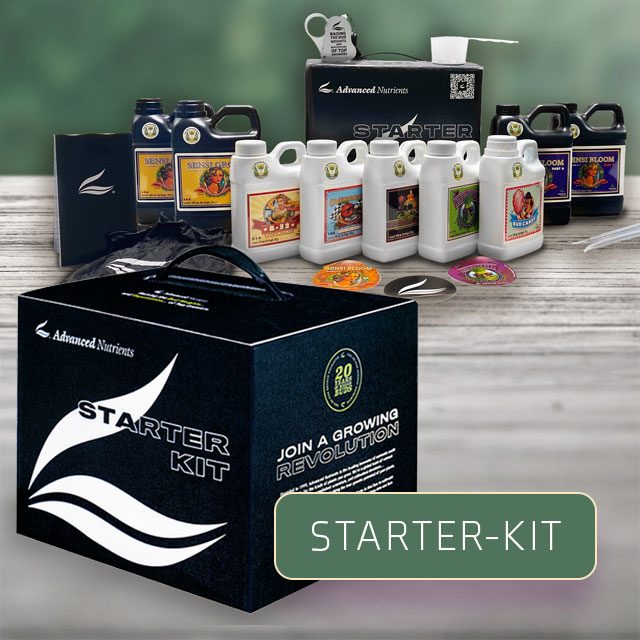 Erziele eine erfolgreiche Ernte, die selbst die erfahrensten Züchter beeindruckt, indem Du einfach das einzige vollständige Nährstoffsystem wählst, das speziell für Deine Cannabispflanzen entwickelt wurde. Mit dem Starter Kit von Advanced Nutrients entfällt das jahrelange Ausprobieren, das die meisten Züchter auf sich nehmen müssen, bevor sie den perfekten Lauf erreichen, und macht es so einfacher denn je, riesige, grüne, Kristall bedeckte Knospen zu kultivieren. Jedes Starter-Kit enthält …pH Perfect® Sensi Grow & Bloom, der Grundnährstoff für mehr Pokalsiege als jedes andere System auf dem MarktBig Bud®, der branchenweit führende BlütenfüllerVoodoo Juice®, unser Vorzeigeprodukt für WurzelnBud Candy®, ein Favorit der Züchter für größere, süßere und mit Zucker überzogene ErträgeOverdrive®, das Geheimnis zur Aufrechterhaltung der Spitzenleistung in der späten BlütephaseB-52®, ein wirksamer B-Vitamin-Komplex zum Schutz vor abiotischem StressEine Trichom-Lupe, ein Messbecher, eine Futtertabelle und zwei 10-ml-Pipetten, damit Du alles hast, was Du brauchst, um wie ein erfahrener Kenner mit dem Cannabis anbau zu beginnen.